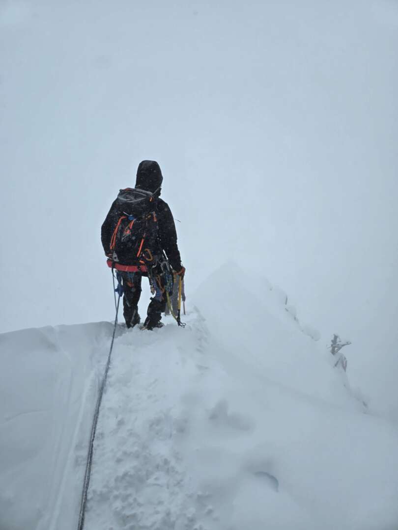 Zejście po grani z Aiguille du Midi na lodowiec przy braku widoczności to świetna zabawa...