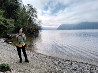 Dostaliśmy zaproszenie na wycieczkę na Traunstein ze znajomymi Sanji z pracy. Dla urozmaicenia postanowiliśmy wspiąć się łatwą drogą. Niestety na ostatnim wyciągu pomyliliśmy drogę i Sanja poszukując właściwej trasy poślizgnęła się na połogiej płycie dobre 2-3 metry nad ostatnim przelotem. Skończyło się ładnymi kilkoma metrami kulgania się i obijania o skałę. Z pozytywów żadnych złamań. Z negatywów poważne obtarcia twarzy. Sanja nie chciała jednak wracać i po pobieżnym opatrzeniu obrażeń kontynuowaliśmy (już z buta) drogę na szczyt, spędziliśmy noc w schronisku i zeszliśmy na dół dopiero następnego dnia.