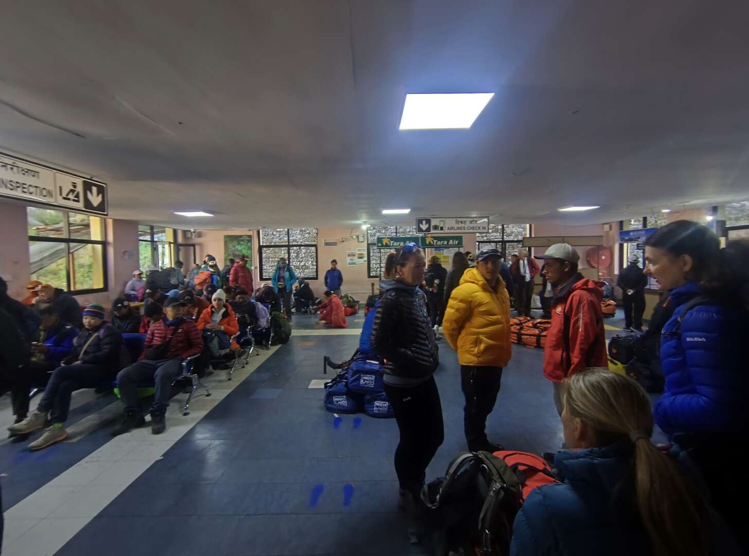 Czekamy na odlot. Za każdym razem, gdy ląduje samolot twojej linii lotniczej podchodzisz do pana przy wyjściu i pokazujesz mu bilet, a on ci mówi, czy to twój lot, czy nie.