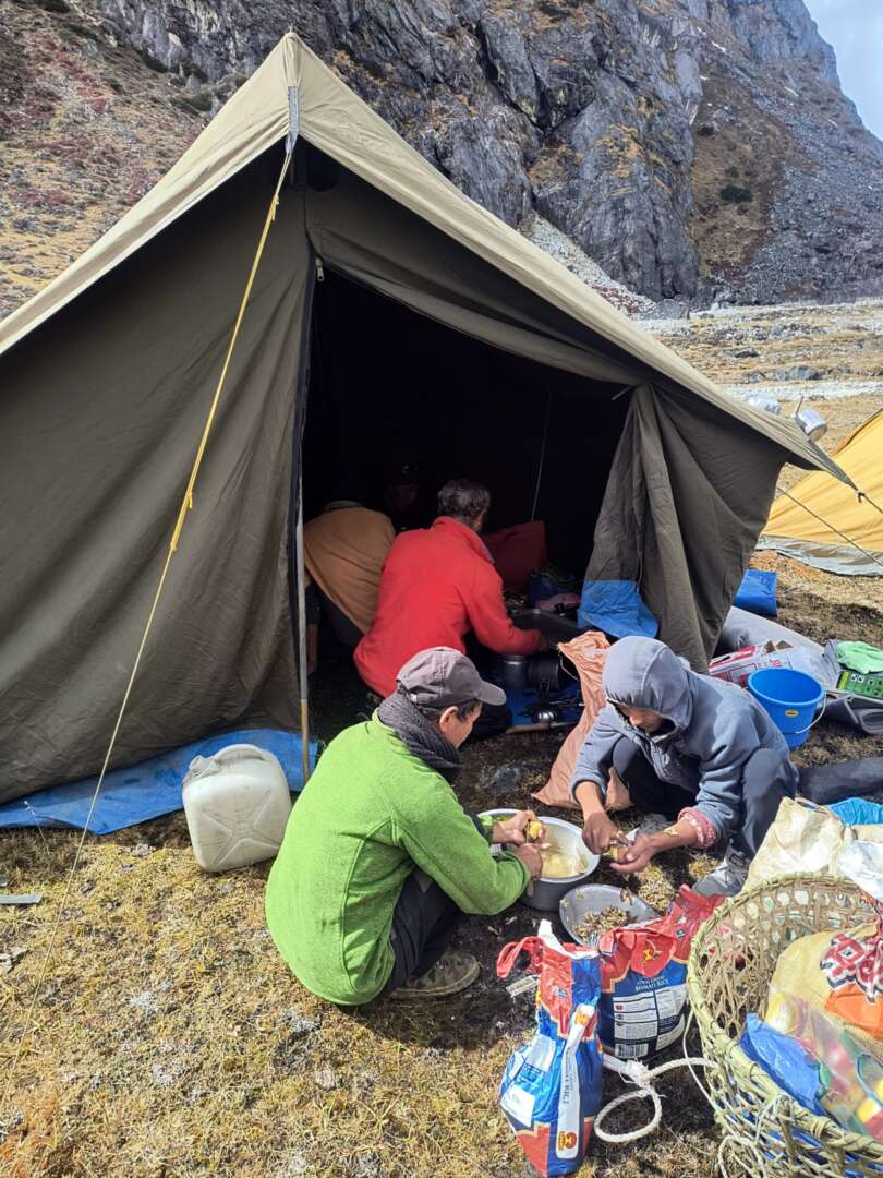 Namiot-kuchnia. W nim spali kuchasz i Sherpowie-tragarze