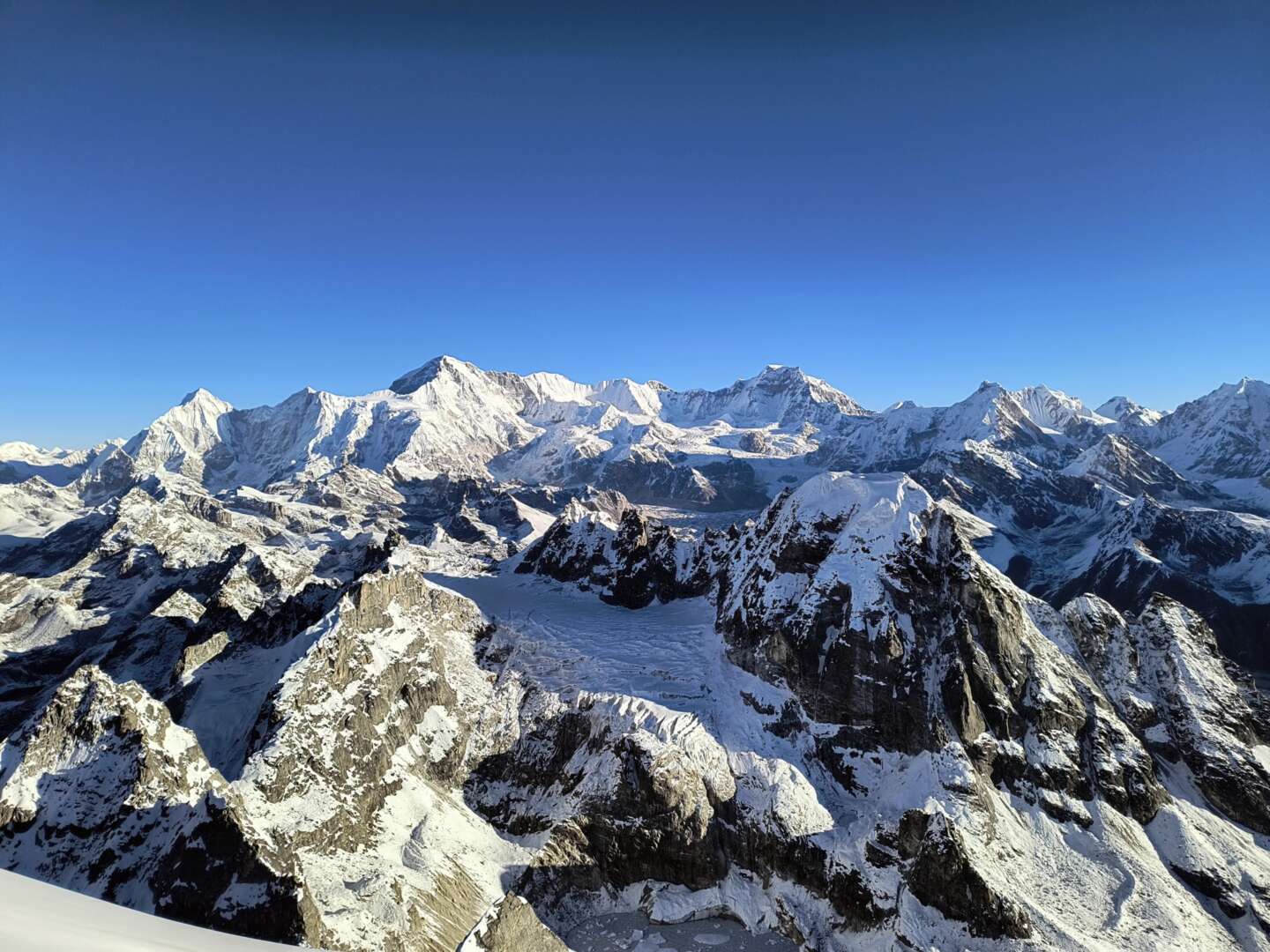 Widoki ze szczytu, ale w sumie nie jestem pewien, co tu widać. Może Everest i Lhose?