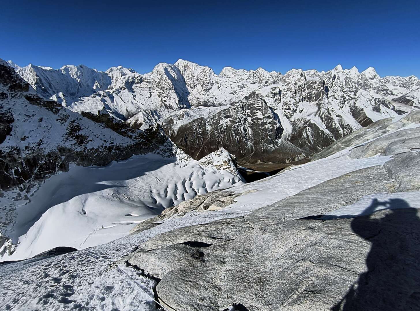 Widoki na drugą stronę przełęczy - piękne szczeliny w lodowcu (ale dobrze, że tam nie idziemy)